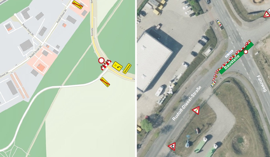 Eine Teilfläche der bestehenden Asphaltbefestigung wird erneuert. Für die Bauarbeiten ist es erforderlich, den Kreuzungsbereich und einen Abschnitt des Fährweges (siehe Lageplan) voll zu sperren. Eine Umleitung über die Rudolf-Diesel-Straße und den Fährweg wird ausgeschildert. Zu jeder Zeit ist die Befahrbarkeit für Rettungsdienste gewährleistet. Die Anliegenden erhalten detaillierte Informationen über das Vorhaben mit einem konkreten Ansprechpartner.