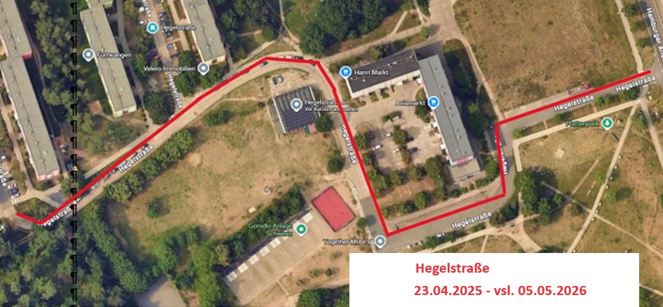 Schwerin – Der Eigenbetrieb SDS – Stadtwirtschaftliche Dienstleistungen Schwerin führt in der Zeit vom 23. April bis voraussichtlich 5. Mai Fräs- und Asphaltarbeiten in der Hegelstraße durch.