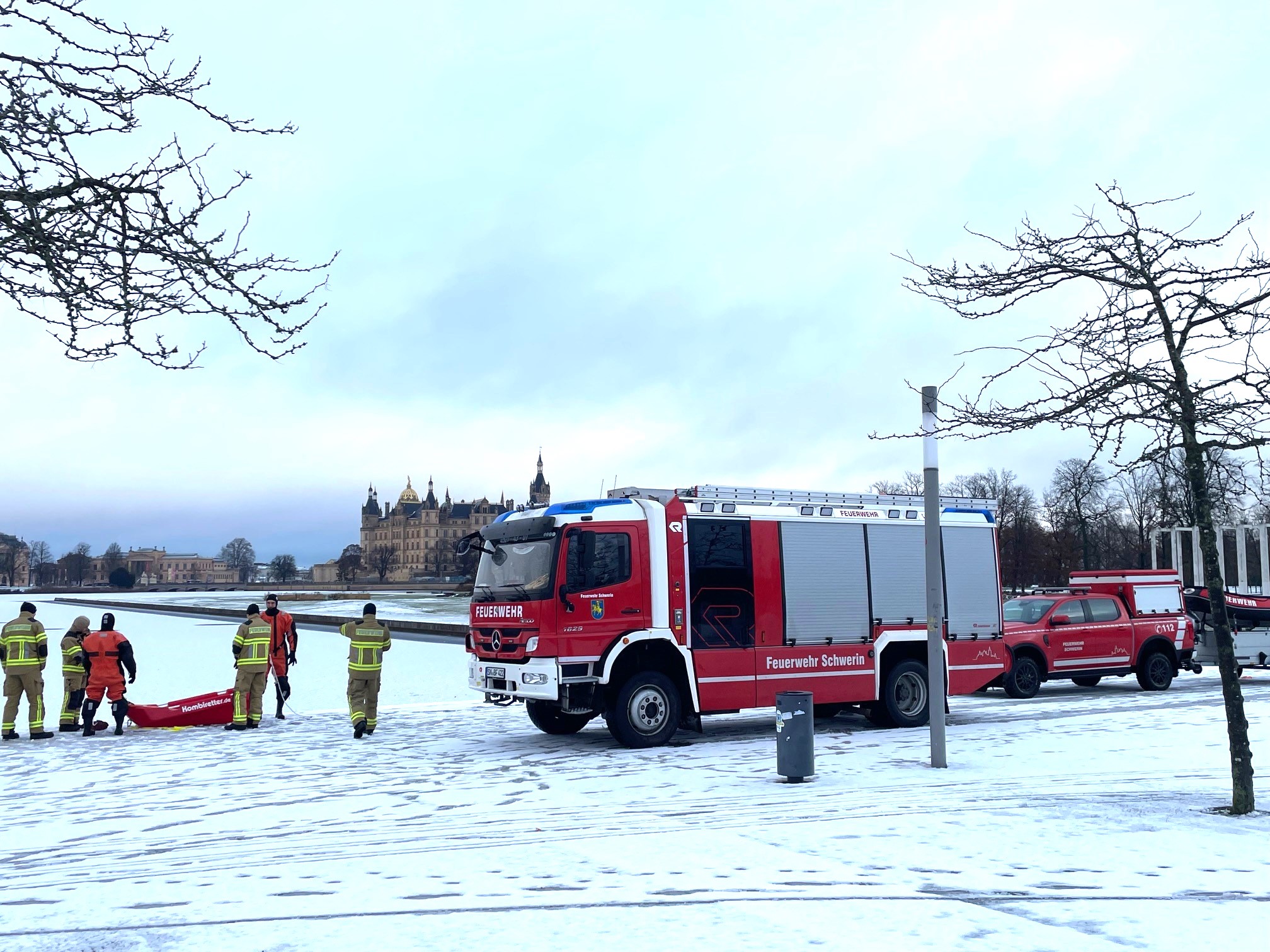 - Vergewissern Sie sich vor dem Betreten des Eises über Standorte von Rettungseinrichtungen der Schweriner Feuerwehr am Ufer. Leitern sind an 6 verschiedenen Stellen zu finden: