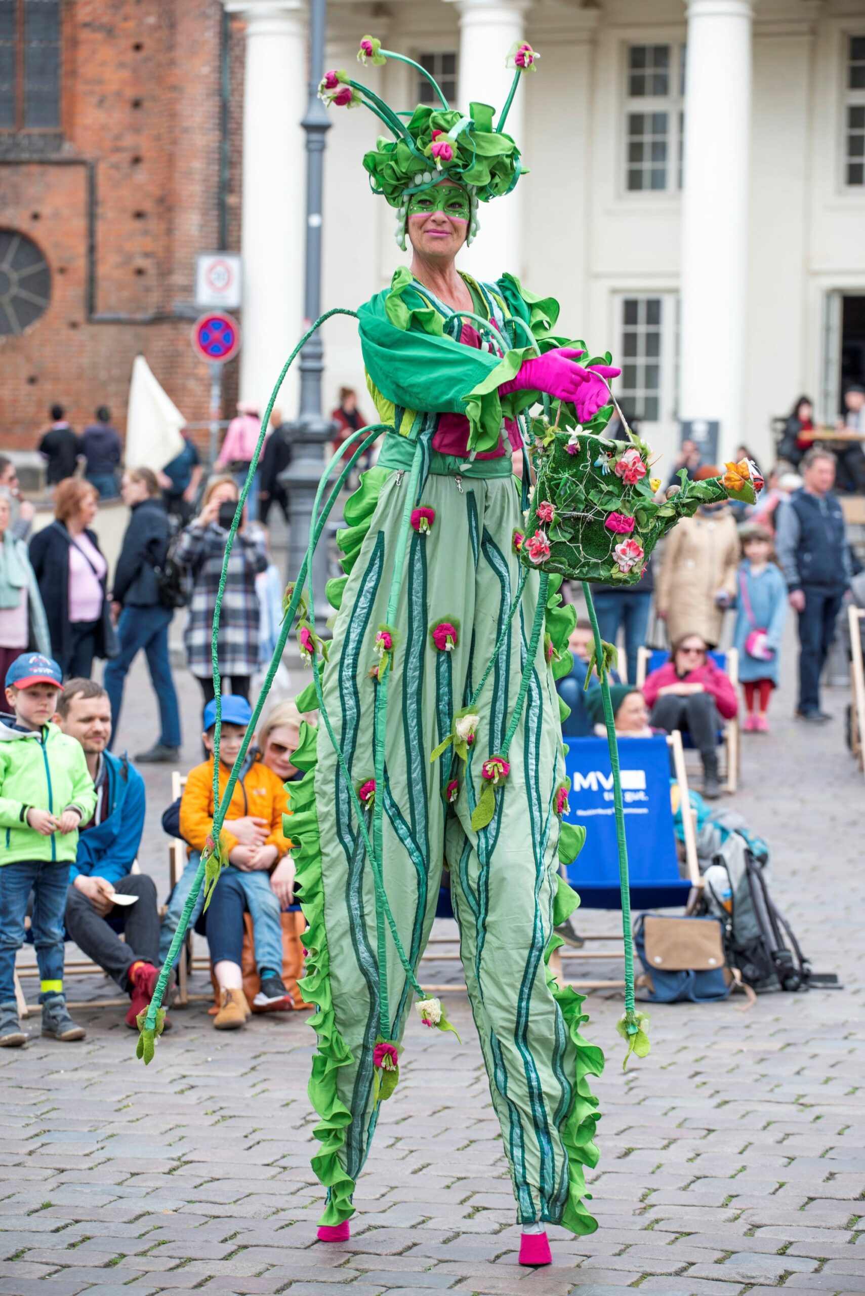 Ab mittags lockt ein buntes und abwechslungsreiches Programm für Groß und Klein in die Schweriner Altstadt rund um den Markt. Neben Partner- und Luftakrobatik vom Berliner Duo Omnivolant, einem Stelzenworkshop vom Zirkus Schwerin e.V., verschiedenen Walking-Acts, Aktionen des Kunstvereins Schwerin, der Buchhandlung littera-et-cetera und einem Pflanzenmarkt in den Schweriner Höfen wird auch wieder viel Musik geboten.