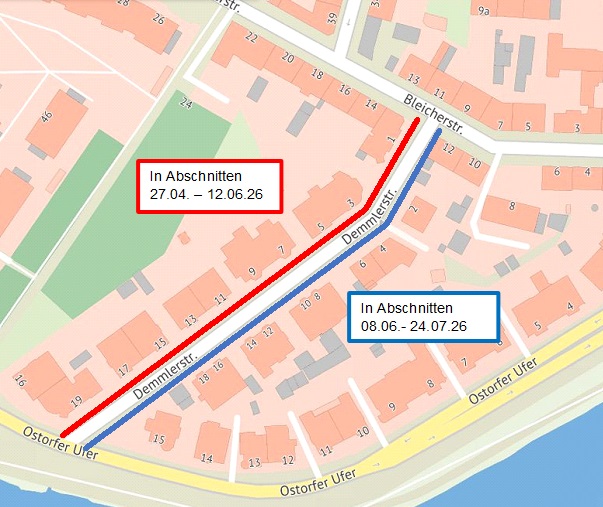 27. April – 12. Juni in Abschnitten Demmlerstraße 1 bis 19, ungerade Hausnummern