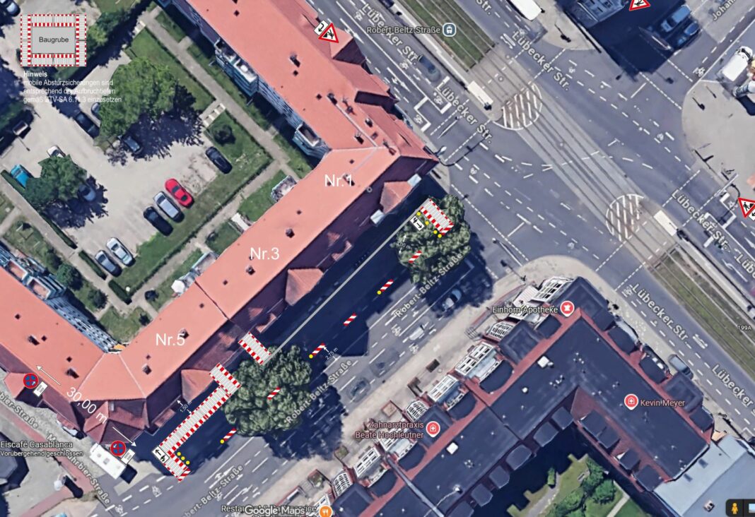 Schwerin – Der Eigenbetrieb SDS – Stadtwirtschaftliche Dienstleistungen Schwerin plant, in der Zeit vom 2. März bis voraussichtlich 2. April Instandsetzungsarbeiten am Gehweg in der Robert-Beltz-Straße Nr. 1 bis 5 zu beginnen. Für die Bauarbeiten ist es erforderlich, den Gehweg im Arbeitsbereich zu sperren. Fußgängerinnen und Fußgänger werden an der Baustelle vorbeigeführt oder können den gegenüberliegenden Gehweg nutzen.