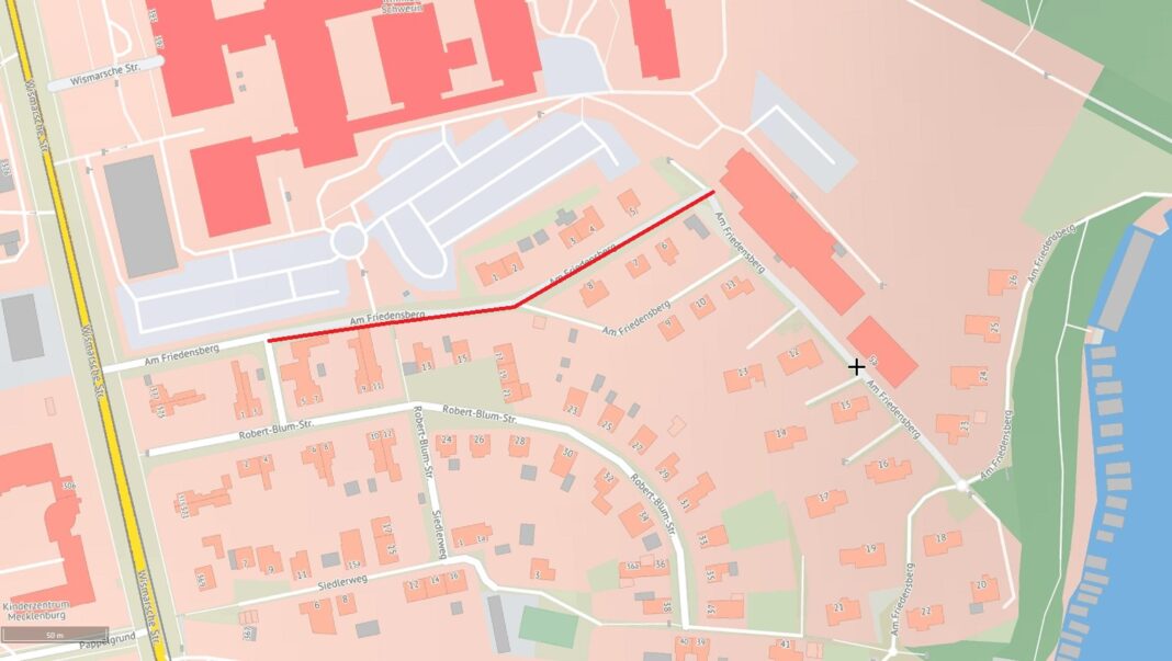 In diesem Zusammenhang werden von der NGS – Netzgesellschaft Schwerin Stromhausanschlüsse erneuert. Die Bauarbeiten am Gehweg beginnen an der Mündung Robert-Blum-Straße und enden in der Straße Am Friedensberg Hausnummer 6. Parallel zur Gehweginstandsetzung werden die Stromhausanschlüsse der Häuser Am Friedensberg 1 bis 5 erneuert. Die Maßnahme erfolgt unter halbseitiger Sperrung. Aufgrund der Arbeiten wird die südliche Zufahrt zum Parkplatz der Helios-Kliniken bis voraussichtlich 14. November gesperrt sein. Der Parkplatz bleibt jedoch über die nördliche Zufahrt erreichbar. Der Gehweg wird voll gesperrt. Personen, die zu Fuß unterwegs sind, nutzen während der Bauzeit die parallel verlaufende Robert-Blum-Straße. Weiterhin kommt es während der Bauausführungen zu Einschränkungen in der Erreichbarkeit der Grundstücke. Eine Befahrbarkeit für Rettungsfahrzeuge wird gewährleistet. Die Abfallentsorgung ist organisiert.
