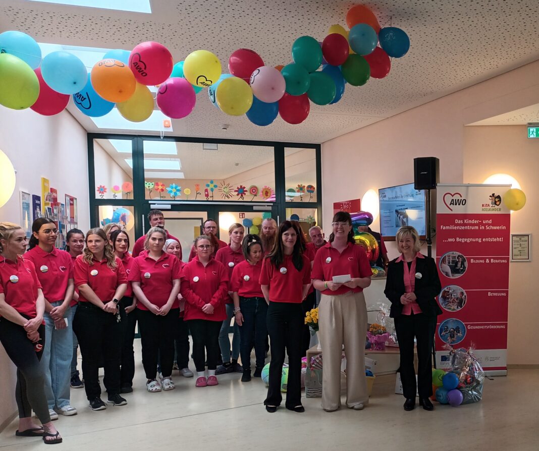 Das Konzept, die AWO-Kita Igelkinder zu einem Eltern-Kind-Zentrum zu entwickeln, besteht schon seit mehr als zehn Jahren. Seit 2025 erfolgt die Weiterentwicklung zu einem Kinder- und Familienzentrum (KiFaZ). Dieser Prozess wird durch das Land Mecklenburg-Vorpommern mit Hilfe des Europäischen Sozialfonds Plus (ESF+) gefördert. Ziel ist, Kitas zu zentralen Anlaufstellen für Familien weiterzuentwickeln. „Der Stadtteil Mueßer Holz wurde dafür als Modellregion ausgewählt“, so Axel Mielke weiter. Familien profitieren hier von einem umfassenden Beratungs- und Unterstützungsangebot, das weit über das einer klassischen Kindertagesstätte hinausgeht. Neben Gesundheits- und Bewegungskursen umfasst dies auch Schwangerschaftsberatung, Frühförderung sowie soziale Beratung für junge Familien. In der integrierten Kochschule und im Bewegungsbad finden zudem generationsübergreifende Kurse statt. Wir prüfen laufend die Bedürfnisse der Familien und schaffen entsprechende Angebote“, erläuterte Simone Mühlbauer, Bereichsleiterin Kita, Bildung und Familie der AWO Westmecklenburg-Schwerin.