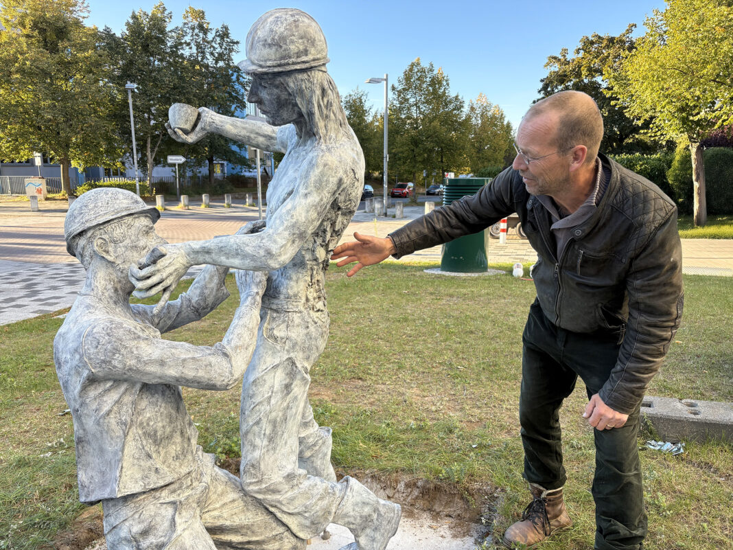 Ein besonderes Highlight der Veranstaltung am 25. September war die Enthüllung von einer Skulptur, die in enger Verbindung zum Standort steht. Der Künstler Sven Schöning hat im Auftrag der WGS die als „Der Bauarbeiter“ bekannte Betonfigur aus den 1970er Jahren neu interpretiert. Das Kunstwerk von Sven Schöning zeigt zwei Bauarbeiter, die sich selbst modellieren – ein künstlerischer Akt, der den Moment des Werdens sichtbar macht und die Figuren in Bewegung hält. Geschaffen wurde die neue Skulptur in Bronze statt in Beton. Das Kunstwerk ist eine Hommage an das Handwerk.