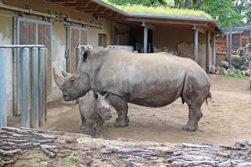 Bereits seit 1980 leben die potenziell vom Aussterben bedrohten Breitmaulnashörner in der Landeshauptstadt, nun stellte sich erstmals Nachwuchs ein. Vater des kleinen Nashorn-Mädchens Kiah ist der Bulle Dino, der im September 2021 in den Schweriner Zoo übersiedelte. Nahezu unmittelbar nach seinem Einzug flogen die Funken zwischen ihm und Clara, sodass die Nashorn-Dame schnell in anderen Umständen war und ihren Nachwuchs nach 17-monatiger Trächtigkeit gesund und munter auf die Welt brachte.