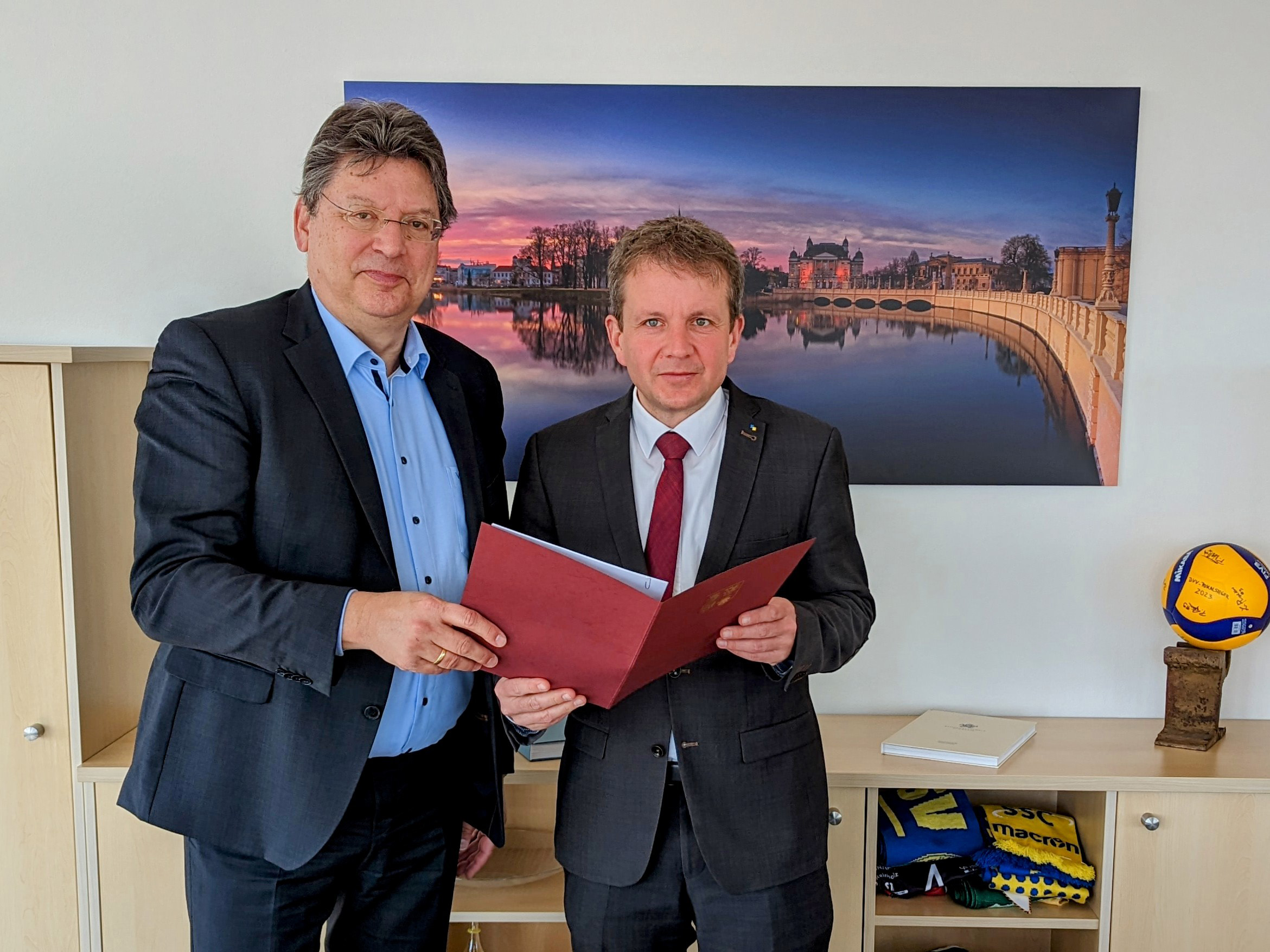Reinhard Meyer, Minister für Wirtschaft, Infrastruktur, Tourismus und Arbeit, übergab heute dazu einen Zuwendungsbescheid an Schwerins Oberbürgermeister Rico Badenschier. „Neben dem Radweg Greifswalder Straße ist der neue Radweg vom Tunnel der B 106 bis zum Neumühler Weg eine weitere Maßnahme zur Umsetzung unseres Radverkehrskonzeptes“, betont Badenschier. „Dieser Lückenschluss zum jetzigen Zeitpunkt im Radwegenetz ist durch eine 90%ige Förderung möglich, die das Wirtschaftsministerium aus dem Bundesprogramm Stadt und Land bereitgestellt hat.“
