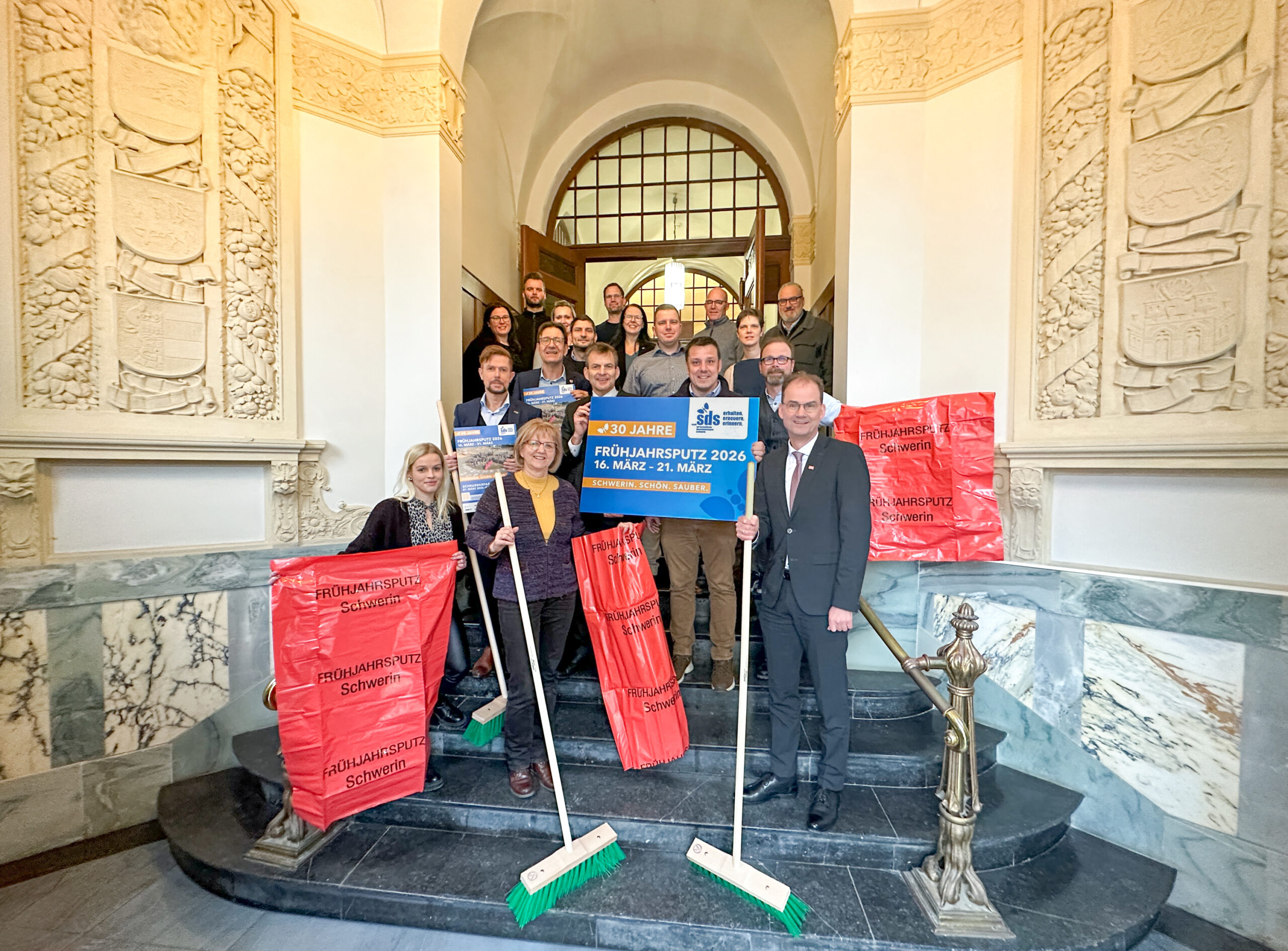 In der Woche vom 16. bis 21. März sind wieder alle Schwerinerinnen und Schweriner aufgerufen, beim Frühjahrsputz vor ihrer Haustür oder in ihrem Wohngebiet aktiv zu werden. Alle sind gespannt, ob die Ergebnisse des vergangenen Jahres übertroffen werden. 2025 wurden 2.712 rote Säcke ausgegeben, die von 6.096 Aktiven gefüllt wurden. 19,5 Tonnen Müll kamen dabei zusammen. Am Ende der Aktionswoche werden alle Helferinnen, Helfer und Gäste bei der Schrubberparty am 21. März von 11 bis 15 Uhr auf dem Bertha-Klingberg-Platz feiern. Hier gibt es Spiel, Spaß und Musik für die ganze Familie. Der Ballonkran lockt mit einem fabelhaften Ausblick auf die geputzte Stadt, Sportvereine stellen sich vor und beim Fußballdart ist Treffsicherheit gefordert. Auf einem Laufsteg vor der Bühne werden sich kreative Kita-Kinder bei einer bunten Müllmodenschau präsentieren.