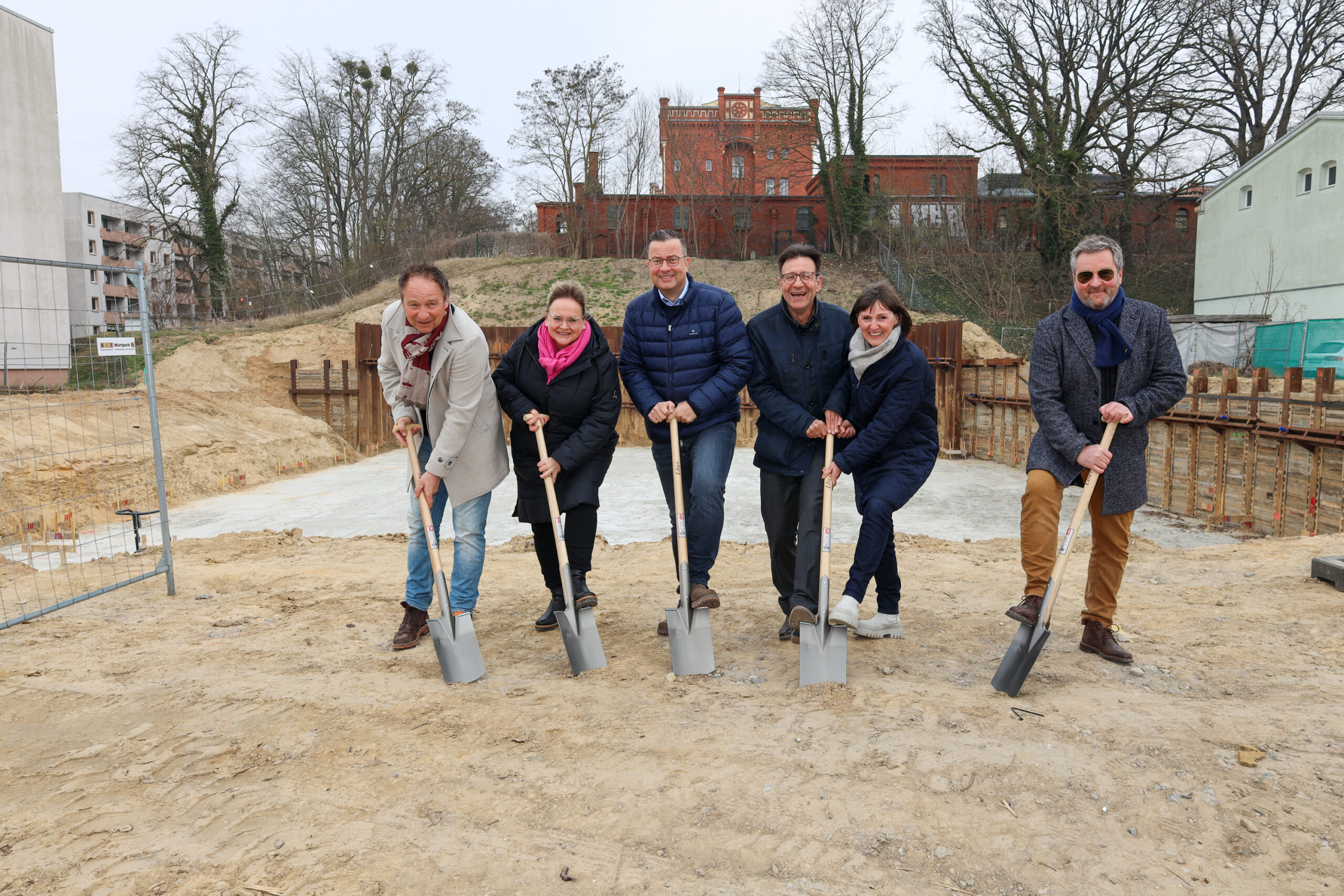 Zum Termin geladen hatte die Slüter Ufer SN GmbH, die das Projekt als Investor umsetzt. „Wir haben zwölf Millionen Euro veranschlagt“, sagt Geschäftsführer Jens Bochert. „Die DKB-Bank ist als Partner mit im Boot“, ergänzt Andreas Kruse, ebenfalls Geschäftsführer. Die Eröffnung des Hauses erfolgt im März 2027.