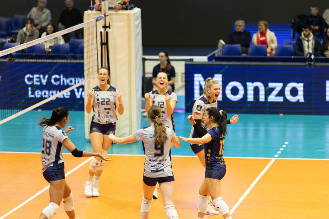 Den zweiten Satz begann Vero Volley mit aggressiven Aufschlägen und setzte die Schweriner Annahme gehörig unter Druck, sodass die Gäste mit 7:4 ins Hintertreffen gerieten. Doch dann ging Leana Grozer an den Aufschlag und Schwerin übernahm die Führung zum 7:8. Durch gute Abwehrarbeit erspielten sich die Gäste eine 3-Punkte-Führung zum 9:12, die Mailands Coach Lavarini zur Auszeit zwang. Doch den Trainerpunkt gab es nicht, denn Hannah Kohn servierte ein Ass. Doch den Italienerinnen gelang der Sideout und eine Aufschlagserie von Olympiasiegerin Orro brachte den Führungswechsel bei 14:13. Auch ihre Landsfrau Elena Pietrini zeigte in der folgenden Rotation viel Präzision von der Grundlinie und Schwerin geriet 18:14 in Rückstand. Das Team von Felix Koslowski holte durch clevere Angriffslösungen und gute Blockarbeit zum 20:19 auf, doch Mailand erhöhte den Druck als es eng wurde und beendete den Durchgang mit 25:21. Mit zwei gewonnenen Sätzen sicherte sich der aktuelle Tabellendritte der italienischen Liga den Einzug in die nächste Runde.