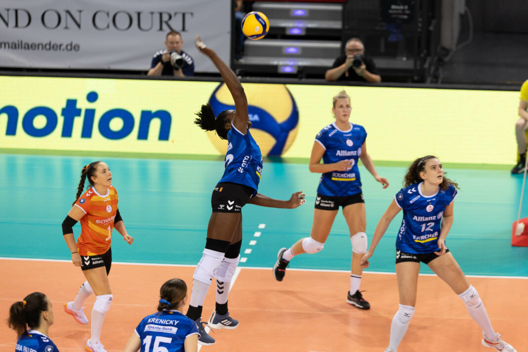 Schwerin – Vor knapp 6.000 Zuschauern in der Stuttgarter Porsche Arena lieferten sich am Sonntagnachmittag der SSC Palmberg Schwerin und Allianz MTV Stuttgart den Kampf um den Sparda-Bank Supercup, den ersten Titel der neuen Saison. Auf Seiten der Schweriner Gäste fehlte Top-Scorerin Nova Marring verletzungsbedingt, Fleur Savelkoel und Anne Hölzig bestritten nach ihren Kreuzbandrissen in der vergangenen Saison ihr erstes Pflichtspiel. Beide Teams mussten sich in der kurzen Saisonvorbereitung besonders durch die personellen Wechsel auf der Zuspielposition neu einspielen und somit entwickelte sich im ersten Durchgang ein spannender Schlagabtausch. Aus einem 5:3 Rückstand aus Sicht der Schwerinerinnen machte das Team eine 11:13 Führung, bevor Stuttgart beim Stand von 17:15 wieder die Oberhand gewann. Eine hektische Crunchtime mit Satzbällen für beide Teams fand im SSC Palmberg Schwerin den Sieger des ersten Durchgangs mit 27:25.
